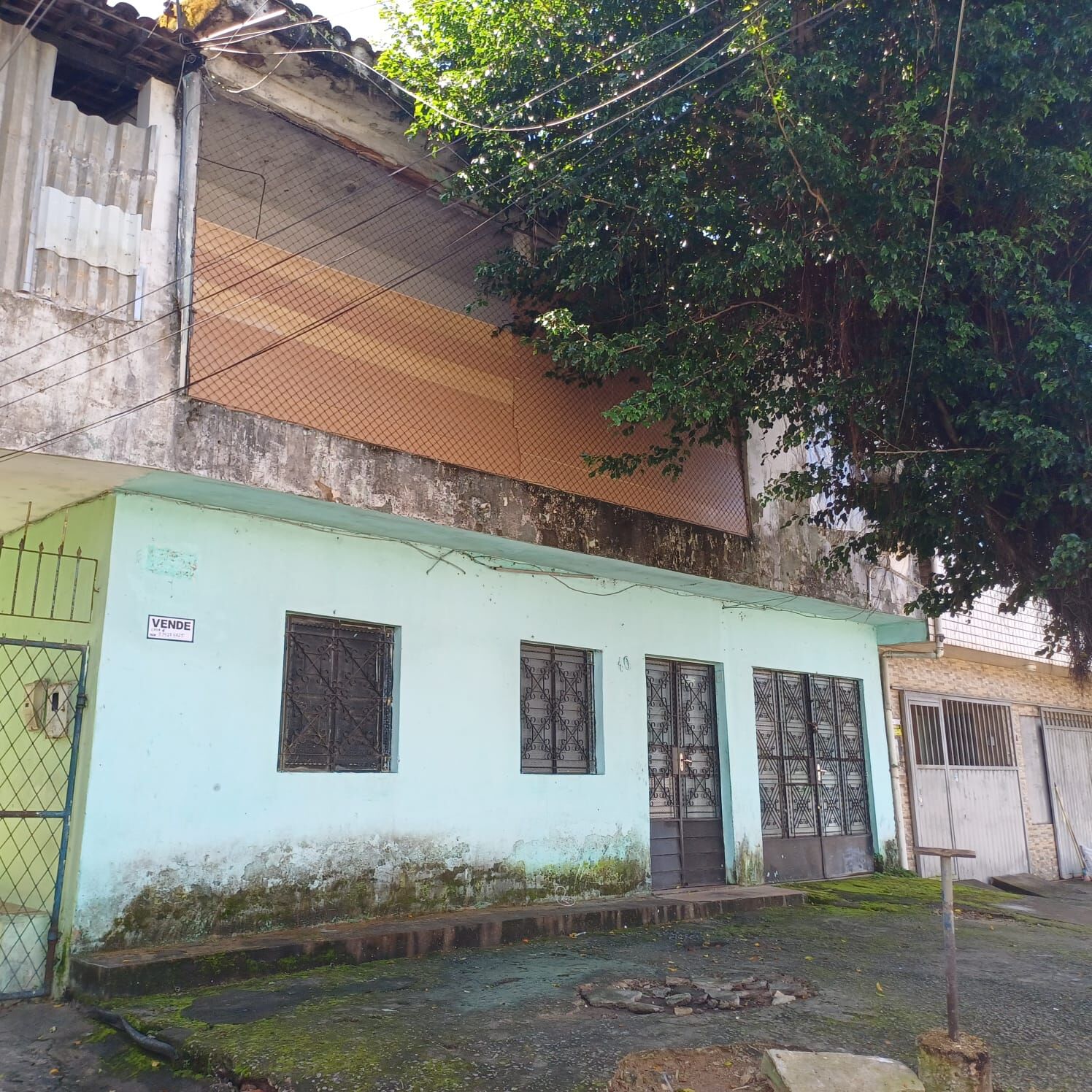 -Casas antigas com área na frente, com portão de ferro e sem pintura, paredes precisando de pinturas, alguma com rachaduras, alguns quartos sem portas, madeira do telhado, em alguns imóveis com caibros redondos e piso cimentado antigas e bem desgastadas. OBS: casa mais desgastada que as anteriores, porém, maior.